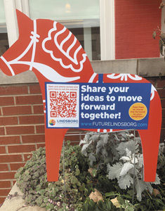 With Lindsborg’s strong ties to Sweden, the Dala Horse was adopted as Lindsborg’s community identity icon and welcome symbol. The planning team created yard signs in the shape of Dala Horses to distribute throughout the community to promote the Comprehensive Plan and encourage residents, business owners, and visitors to participate online.